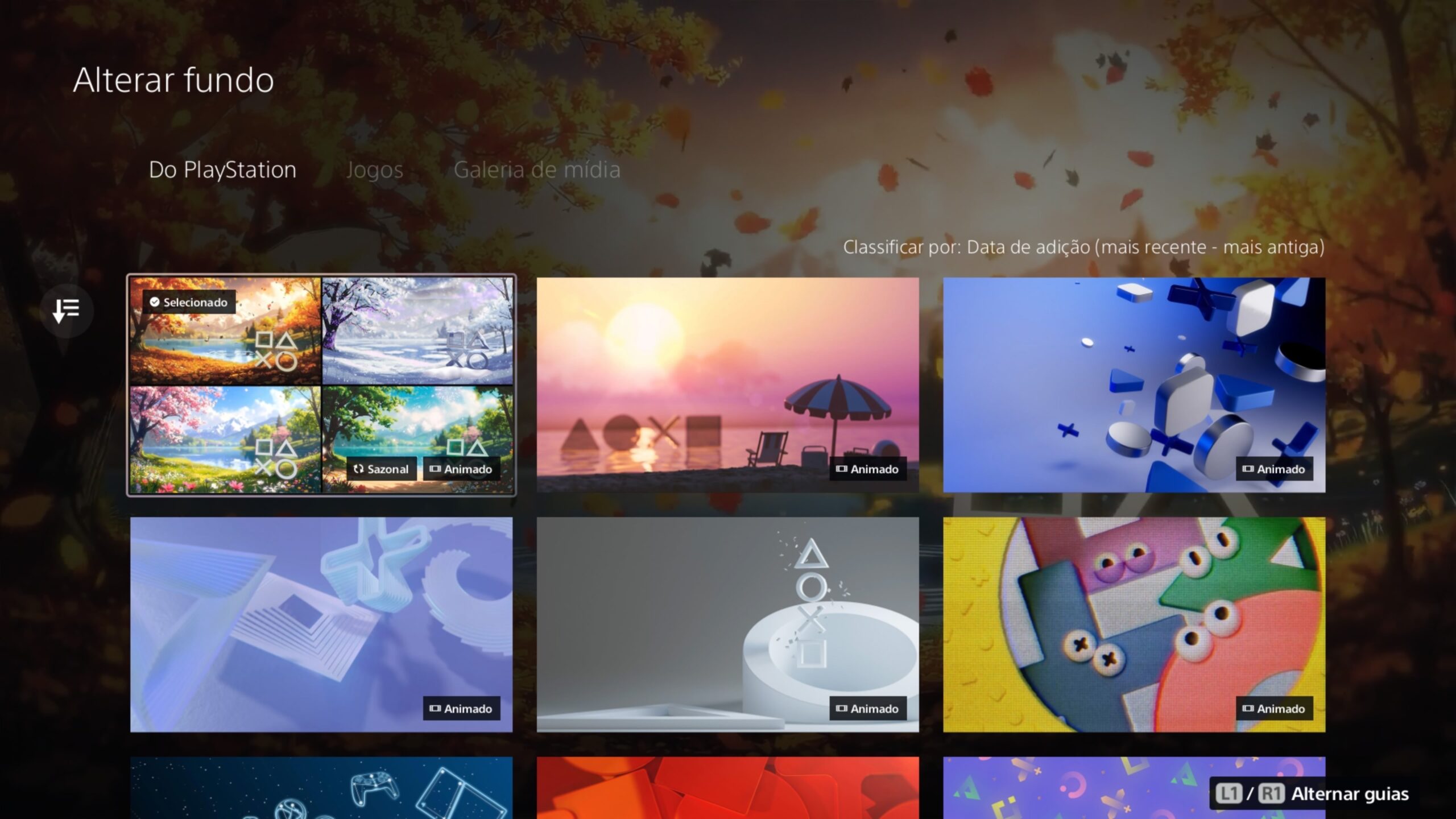 Com o update, o PS5 agora permite ativar wallpapers dinâmicos exclusivos, cada um representando uma das quatro estações: